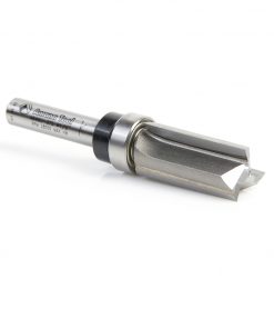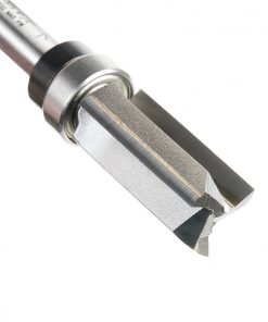 This bit is essentially a plunge-cutting straight with a shank-mounted ball-bearing pilot. Versatile, useful for template/pattern routing of parts, joints, internal cuts and can be used in handheld and table-mounted routers. The template is attached to the workpiece, and the pilot bearing rides along its edge as the cutting edges rout the workpiece, forming an exact duplicate of the template. With a handheld router, the pattern is on top of the work; with a table-mounted router, the pattern is underneath the work.