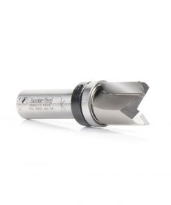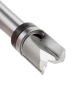 This bit is essentially a plunge-cutting straight with a shank-mounted ball-bearing pilot. Versatile, useful for template/pattern routing of parts, joints, internal cuts and can be used in handheld and table-mounted routers. The template is attached to the workpiece, and the pilot bearing rides along its edge as the cutting edges rout the workpiece, forming an exact duplicate of the template. With a handheld router, the pattern is on top of the work; with a table-mounted router, the pattern is underneath the work.