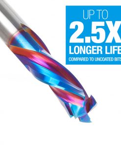 Our Spektra™ bits feature a nACo® nanocomposite coating with an extreme nanohardness and heat resistance. With a brilliant distinctively-tinted coloring nACo provides additional improvements in four critical aspects of router tooling.