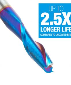 Our Spektra™ bits feature a nACo® nanocomposite coating with an extreme nanohardness and heat resistance. With a brilliant distinctively-tinted coloring nACo provides additional improvements in four critical aspects of router tooling.