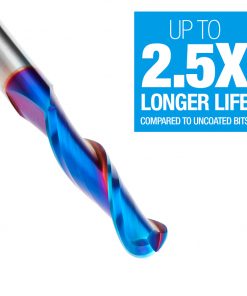 Our Spektra™ bits feature a nACo® nanocomposite coating with an extreme nanohardness and heat resistance. With a brilliant distinctively-tinted coloring nACo provides additional improvements in four critical aspects of router tooling.