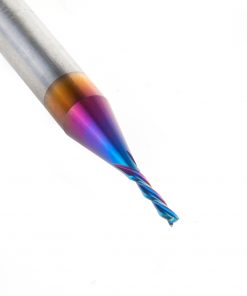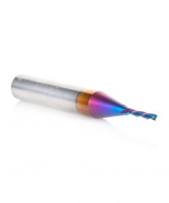 Amana 46486-K CNC 2D and 3D Carving Flat Bottom 0.10 Deg Angle x 1/16 Dia x 5/16 x 1/4 Shank x 2 Inch Long x 3 Flute Solid Carbide Down-Cut Spiral Spektra™ Extreme Tool Life Coated Router Bit