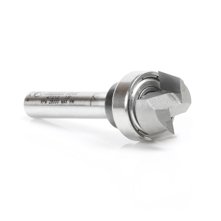 Amana 47212 Carbide Tipped Bevel Trim 15 Deg x 5/8 Dia x 1/4 x 1/4 Inch Shank with Upper Ball Bearing