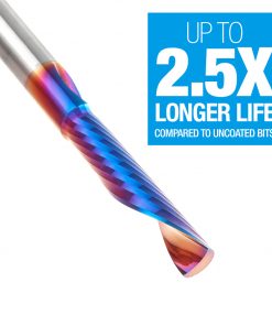 Our Spektra™ bits feature a nACo® nanocomposite coating with an extreme nanohardness and heat resistance. With a brilliant distinctively-tinted coloring nACo provides additional improvements in four critical aspects of router tooling.