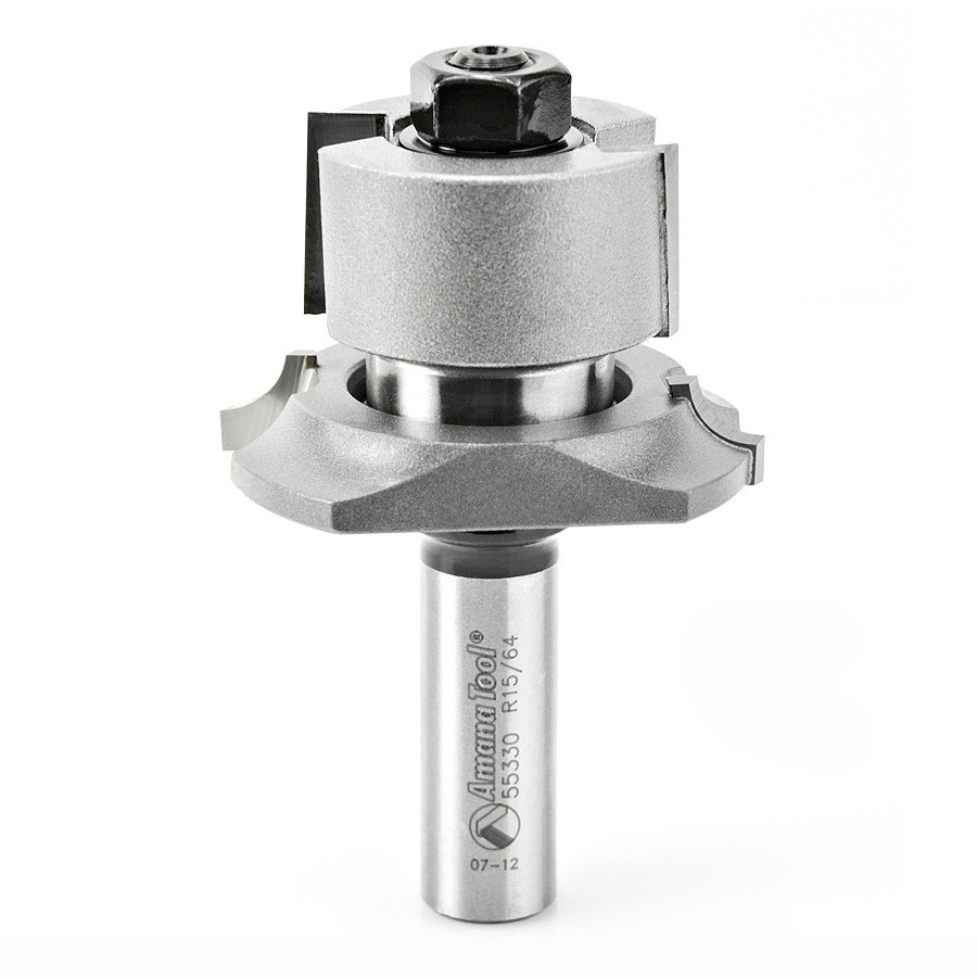 Amana Tool 55330 – Carbide Tipped V Paneling Bead Design 1/4 R x 1-15/16 D x 1-3/16 CH x 1/2 Inch SHK w/ BB Router Bit Assembly