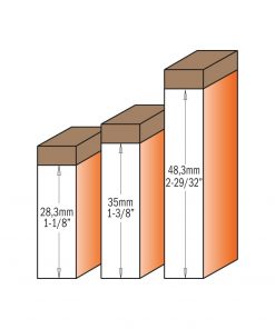 Straight router bits with a replaceable knife fixed by a Torx screw. The top knife features a 3° sharpened angle for plunge and high precision cuts. Equipped with top bearing for template use.