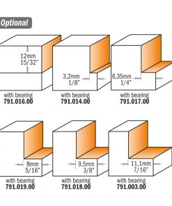 Rabbeting bits are equipped with ball bearing guides for rabbeting width H= 12,7mm.