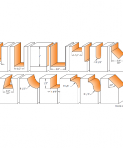 Containing 13 of CMT’s most frequently used 12,7mm (1/2″) shank router bits featuring the finest steel and carbide, plus CMT’s baked-on orange PTFE non-stick coating, this compact case is beautiful and convenient for your woodworking needs. You will have exactly what you need within hand’s reach.
