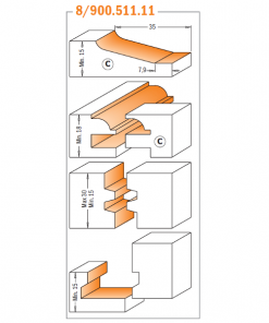 These CMT’s sets aren’t only a random selection of odds and ends packaged in a nice elegant box, but they are also professional kits for drawer and door makers. 3 sets to choose from, 5 different bits to suit your needs: a raised panel bit, rail and stile bits, a glue joint and a drawer lock bit. Please refer to the illustrations below for complete profile options.