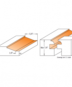 The stick bit shapes a decorative 4,76mm (3/16”) thumbnail moulding along the edge of the frame. The panel bit is designed for 12,7mm (1/2”) think material. All bits are equipped with guide bearings for shaping curved work such as the small arched panel doors seen on secretaries and corner cabinetry.