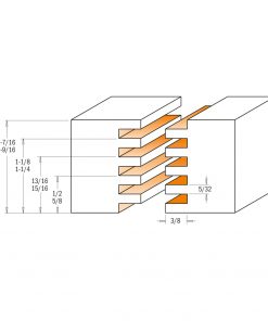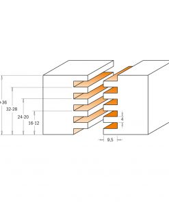 This router allows you to carry out accurate and functional finger joints with the greatest of ease. Without any adjustment you will be able to work woods with different thicknesses as indicated in the drawing.