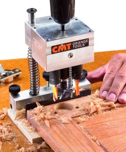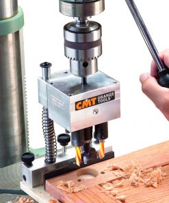 Use the CMT333 hinge cup drill guide on all hand-held or standing drill press tools.