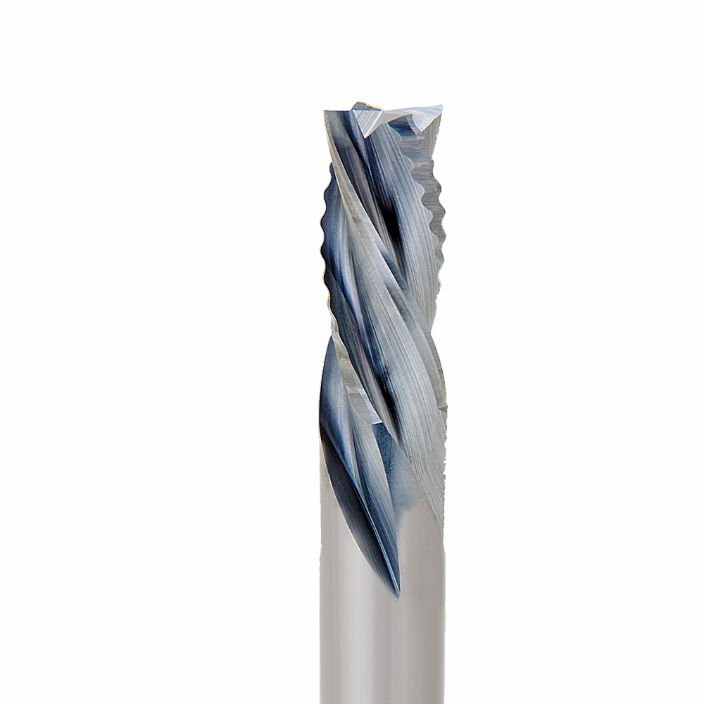 Combine a roughing and finishing cut with upcut cutting action in one tool for rapid feed rates with a good finish.