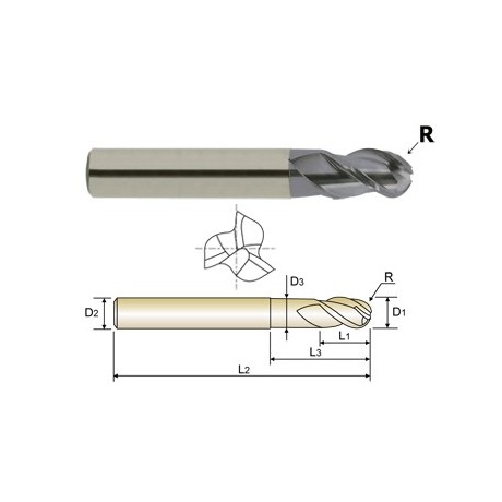 YG1-EG908100 – 10.0 x 10 x 15 x 30 x 80 R5.0 N9.4 – 3 Flute 40 Degree Helix Long Length Ball Nose With Neck Ticn Coated Carbide